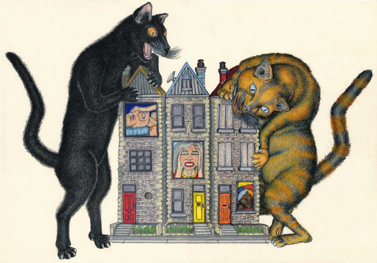 “Stripy Cat Hadn’t Thought Of That,” written by Vicki and Mark Burg and illustrated by Simone Fraser, describes in rhyme the antics of two quite naughty cats during a typical day!